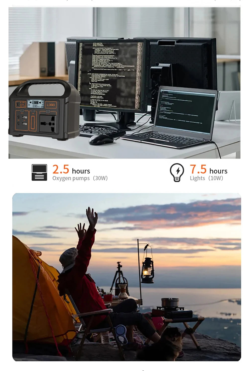 2. Application scenarios: home emergency power supply, outdoor camping power supply, night construction power supply, emergency rescue power supply, etc.
